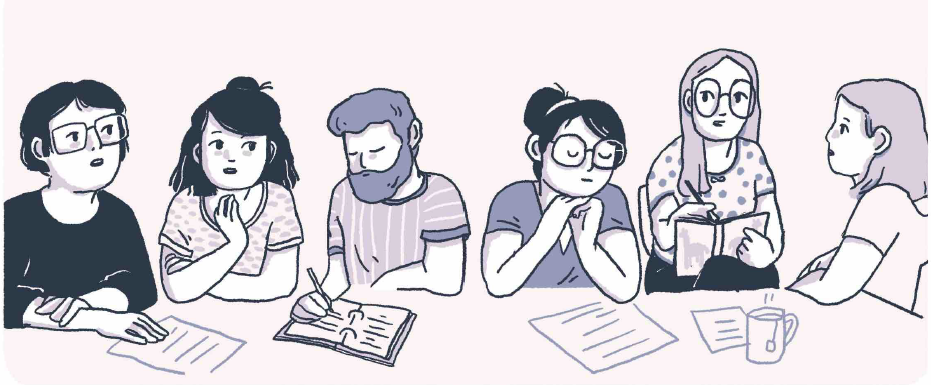 Durant la première année du cercle, les membres ont été accompagné·es par Pauline Spira, autrice et illustratrice, qui a capté l’essence des échanges à travers une bande dessinée.