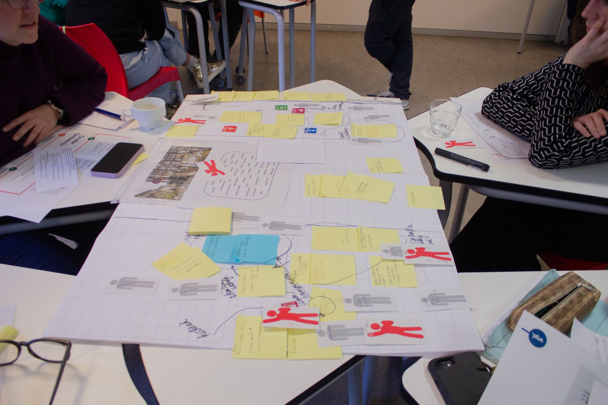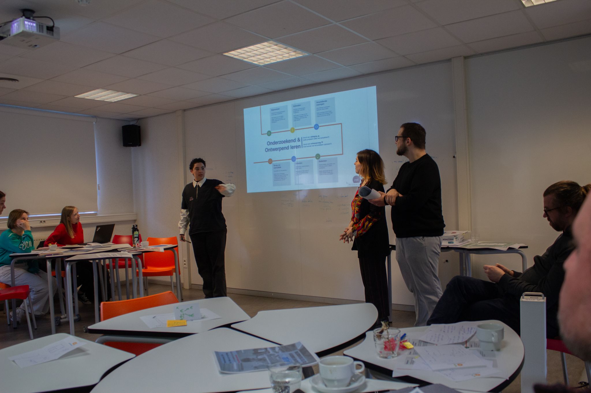 In de namiddag stelden drie enthousiaste stagiairs van Vrijplaats hun gloednieuwe prototype voor die ze ontworpen hebben van een soortgelijk proces met een variëteit aan methodieken. Hun prototype neemt het thema “fast fashion” als ingangspunt. Een sterk gekozen onderwerp, want het thema raakt iedereen – jong of oud. Vanuit hun expertise gaven de scholen feedback, stelden ze kritische vragen en dachten ze mee over verbeteringen. Eén school was meteen zo enthousiast dat ze zich op het moment zelf aanmeldden om het prototype uit te testen als deel van hun eigen traject. Nadien werkten alle scholen verder aan hun eigen project: ze schreven een plan van aanpak uit en dachten na over mogelijke drempels.